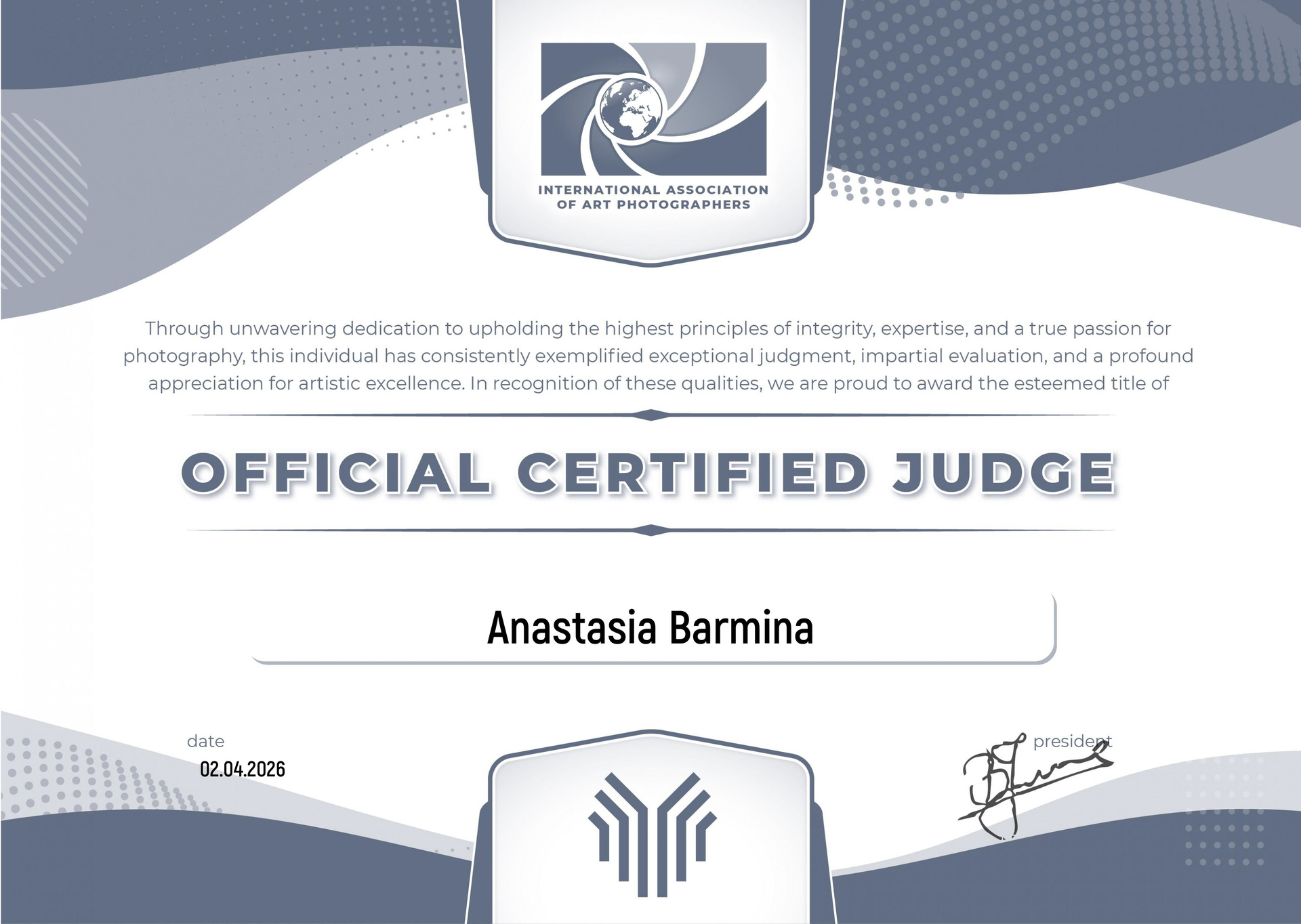- BICFP (Best International Child & Family Photographers), 3 место в номинации «Портрет года» 2023г